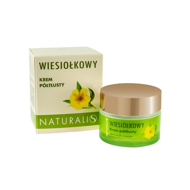 Wiesiołkowy Krem Półtłusty NATURALIS zawiera biologicznie aktywny olej wiesiołkowy, w tym kwas gamma linolenowy, odpowiadający za nawilżenie skóry i jej funkcje obronne. Krem wzmacnia naturalną barierę hydrolipidową, przywraca i stabilizuje odpowiedni poziom nawilżenia, eliminując uczucie suchości skóry. Skóra staje się aksamitna w dotyku, odzyskuje gładkość i naturalną elastyczność. Krem dla skóry suchej, normalnej i wrażliwej, wspomagającej ochrony przed wpływem czynników zewnętrznych.